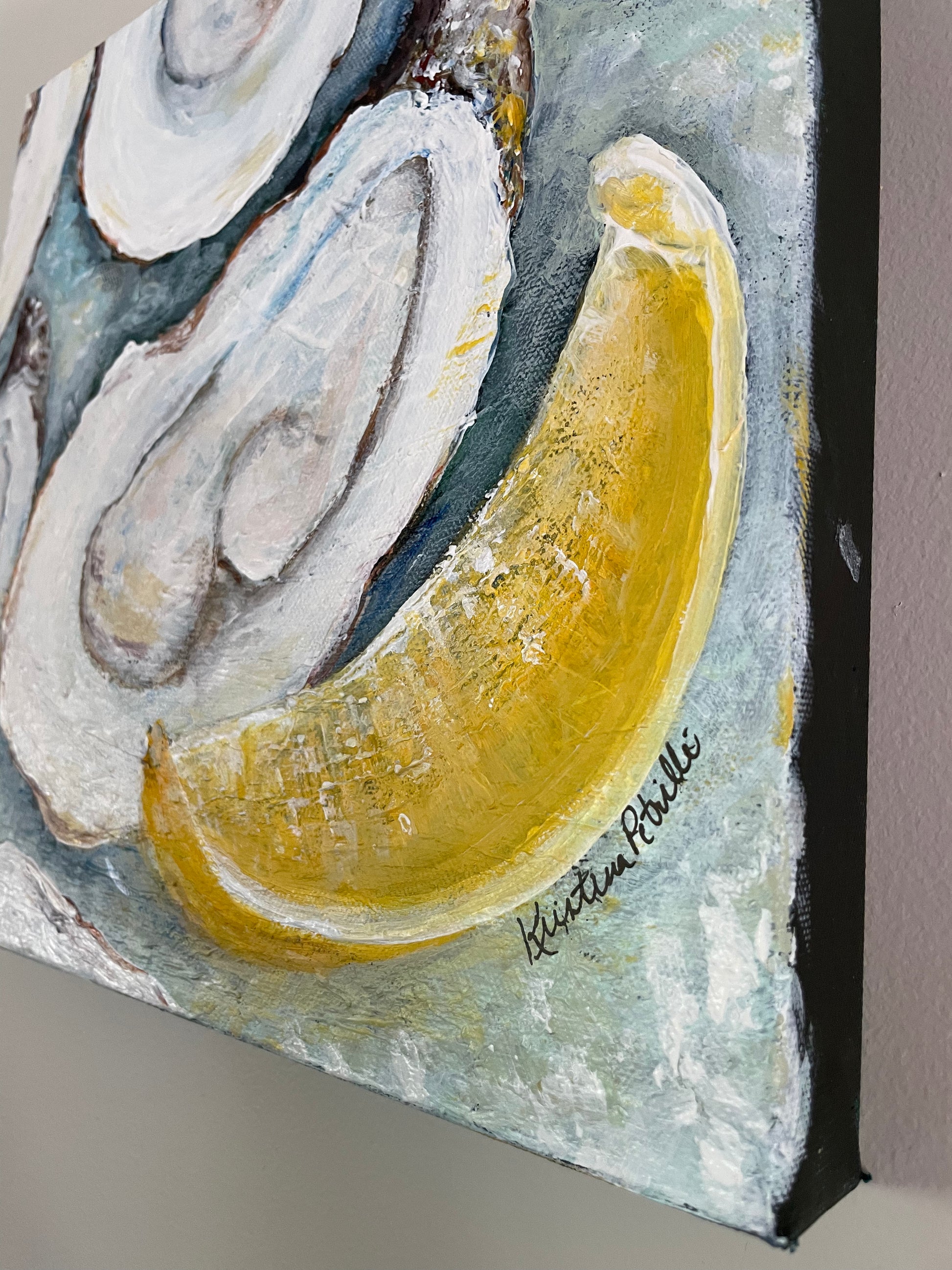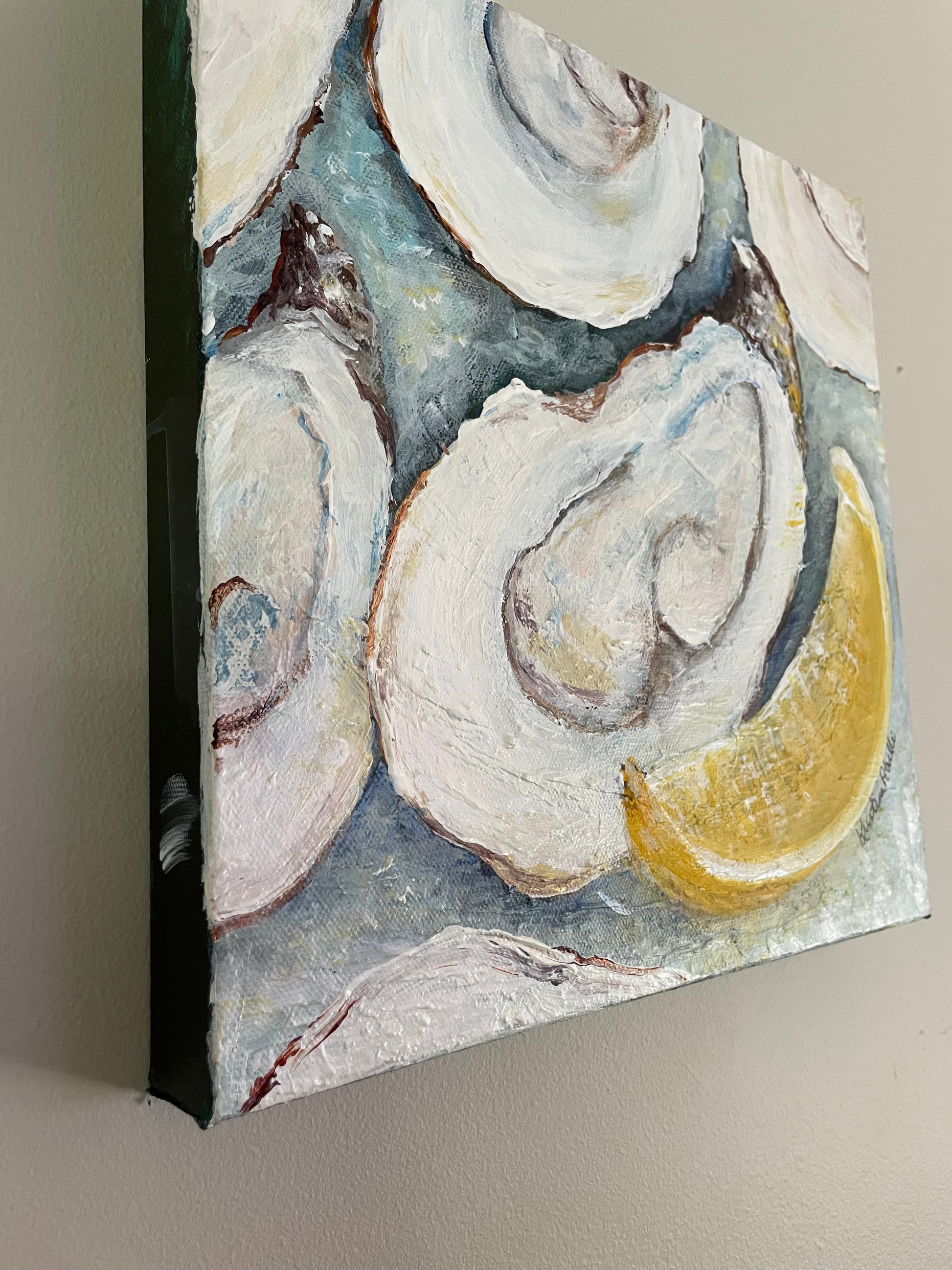 Original acrylic painting based on a Quonnie Siren Oysters on ice by Rhode Island artist Kristina Petrilli.