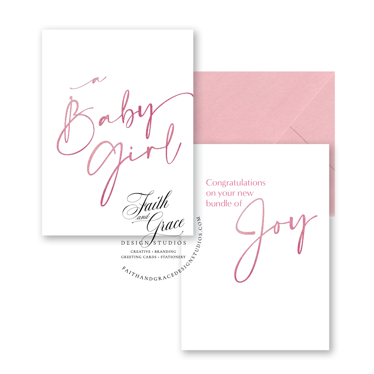 Inside reads, in pink: Congratulations on your bundle of joy!