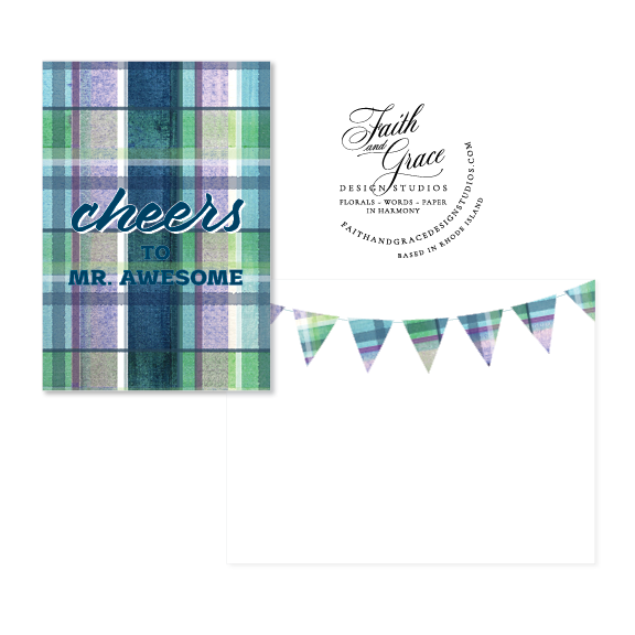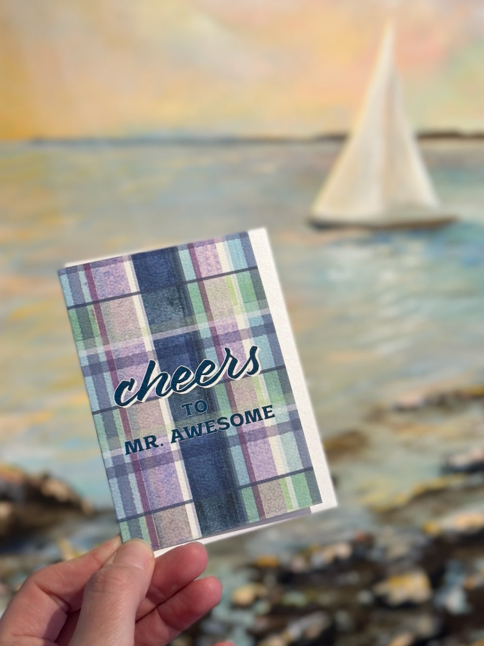 Raise a smile with the Cheers to Mr. Awesome Greeting Card! Featuring a hand-painted plaid cover and fun lettering on felt paper, this card brings a playful vibe to your celebration. Inside, the cheerful plaid bunting adds a festive touch, making it the perfect way to toast the awesome guy in your life.