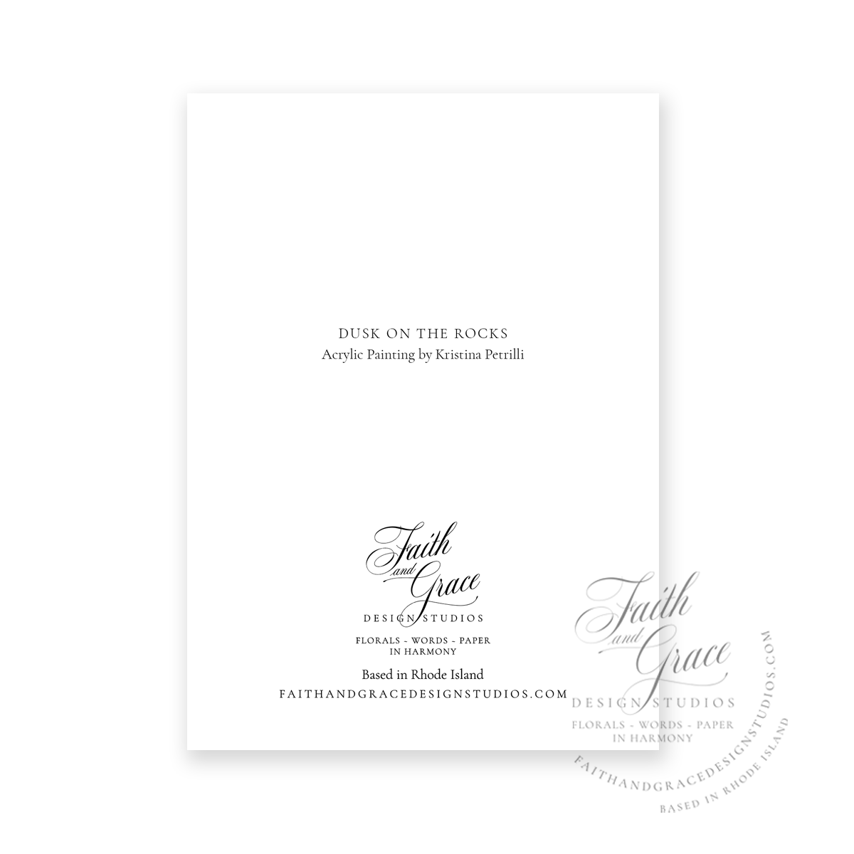 Cover: Dusk on the Rocks original acrylic painting by Kristina Petrilli