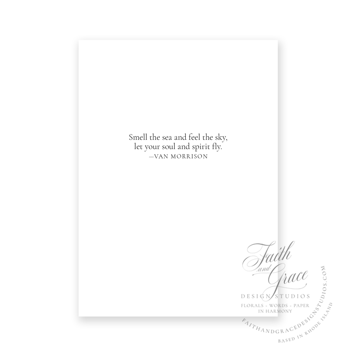 Inside left panel reads: "Smell the sea and feel the sky, let your soul and spirit fly" —Van Morrison