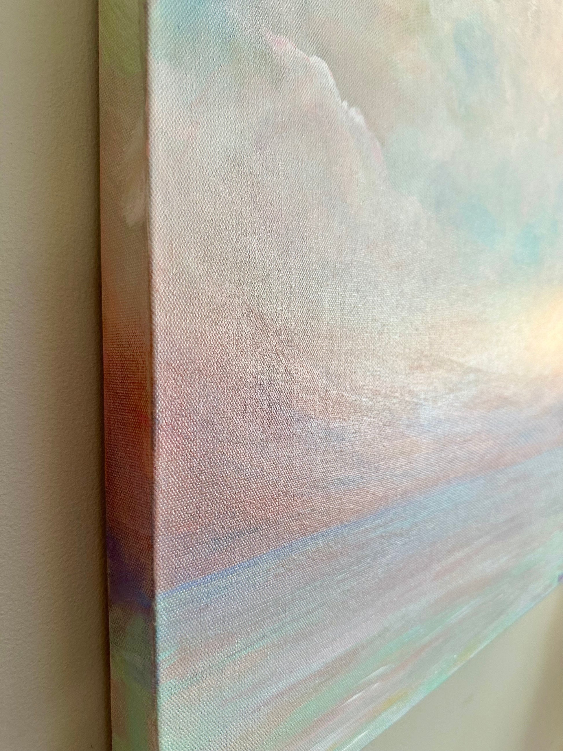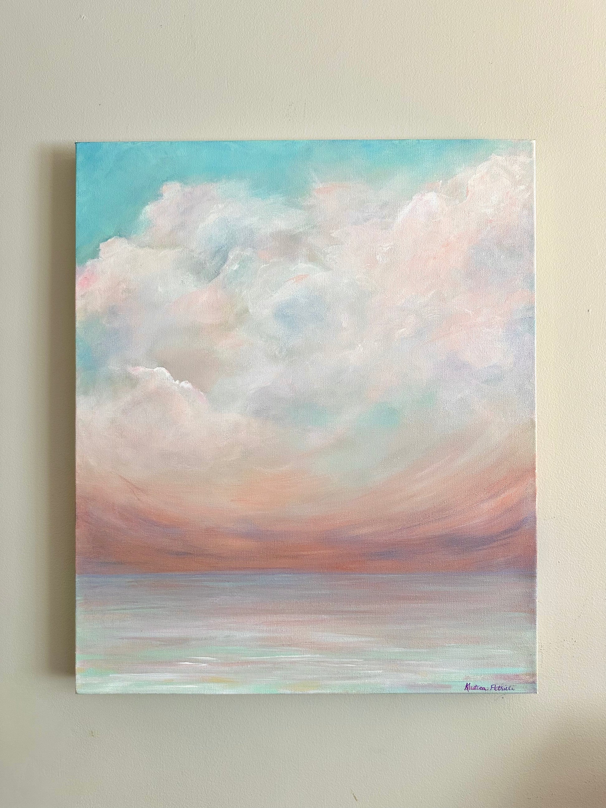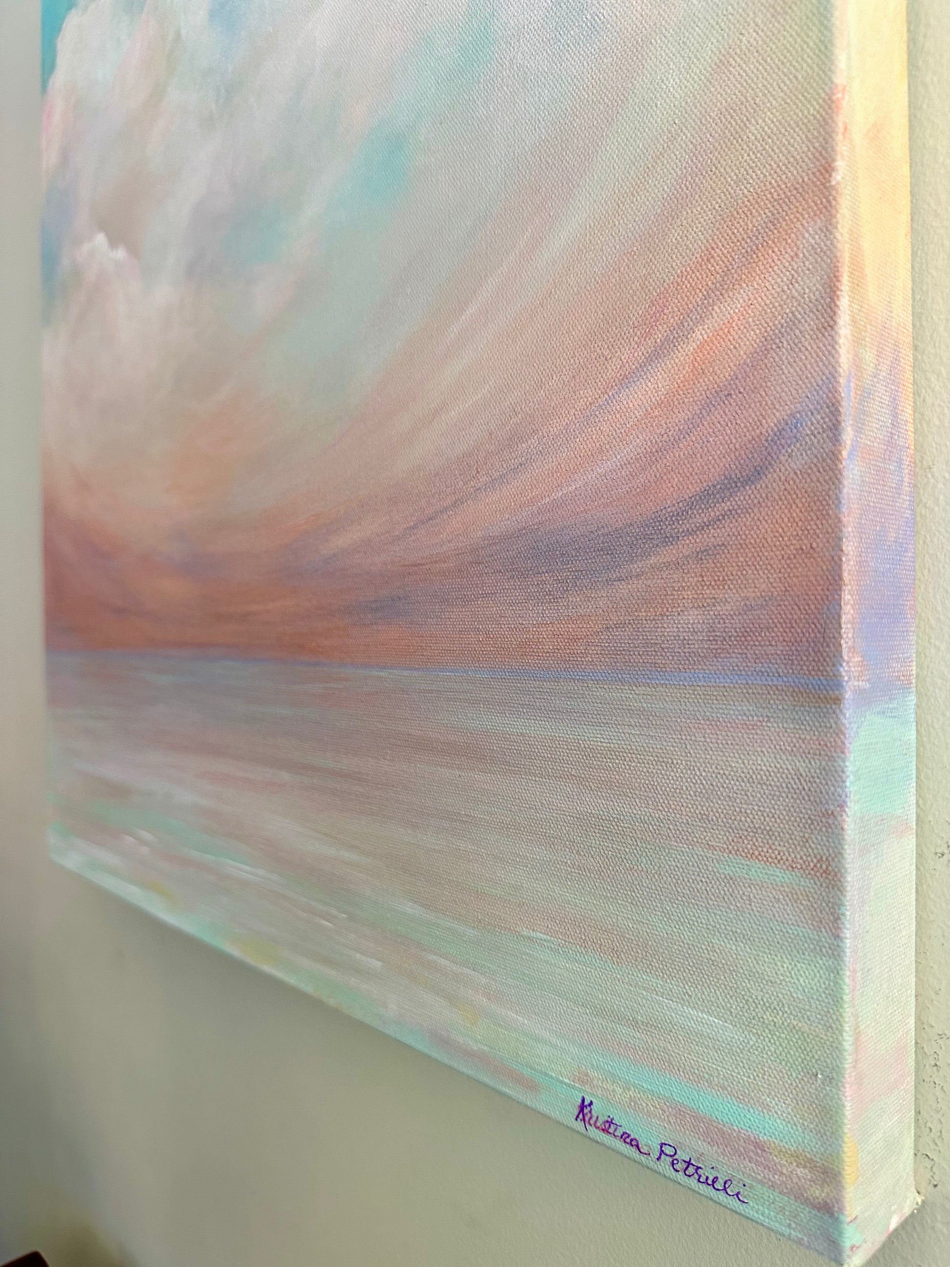 Original acrylic painting of a calm, humid summer evening at Narragansett Town Beach in Narragansett by Rhode Island artist Kristina Petrilli.