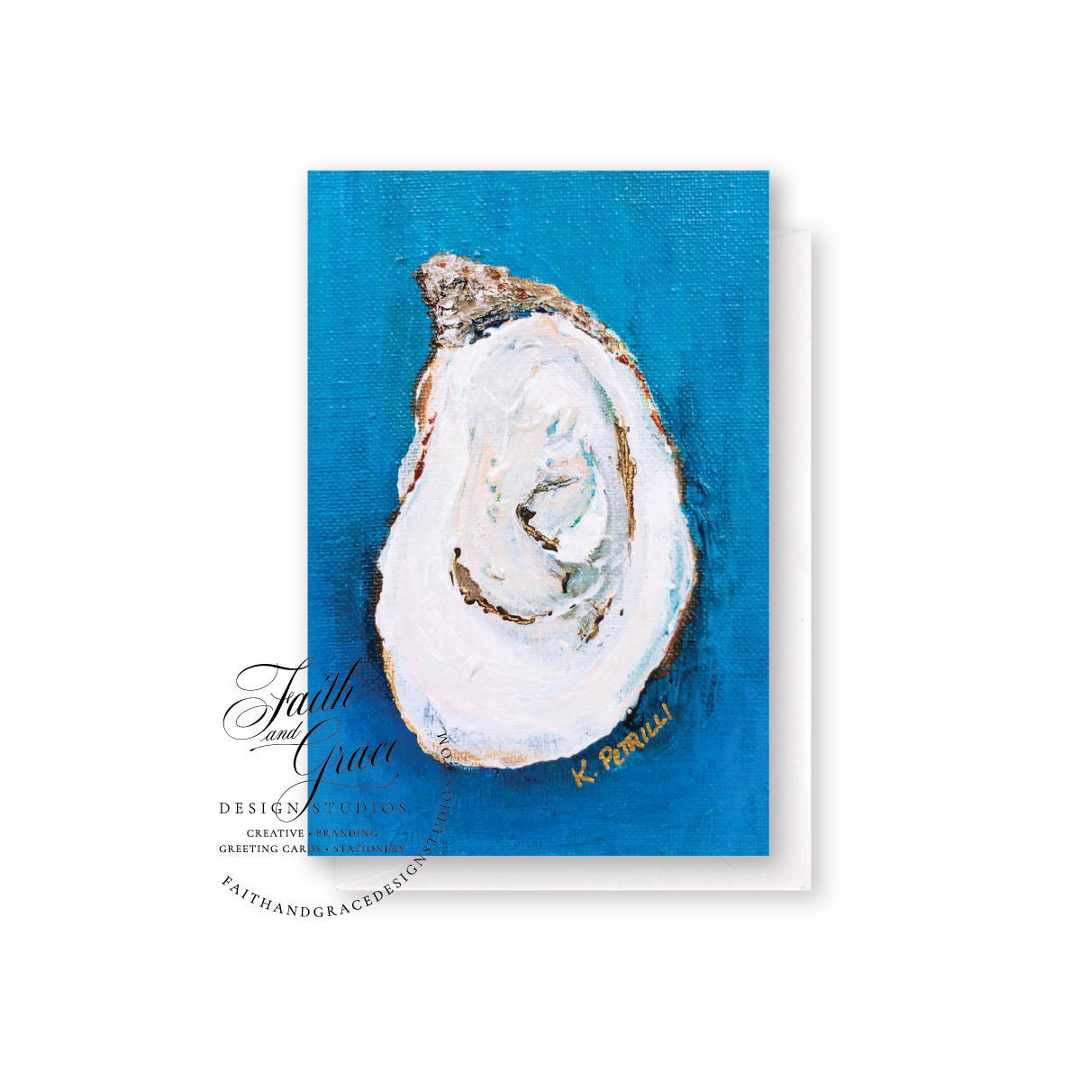Oyster on Blue Notecard | Blank Inside