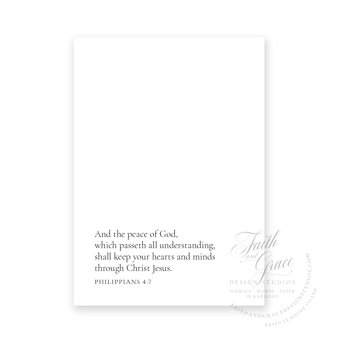 Inside left corner reads: "And the peace of God, which passeth all understanding, shall keep your hearts and minds through Christ Jesus. Philippians 4:7"
