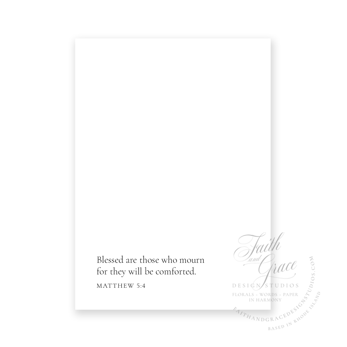 Inside left corner reads: "Blessed are those who mourn for they will be comforted. Matthew 5:4"